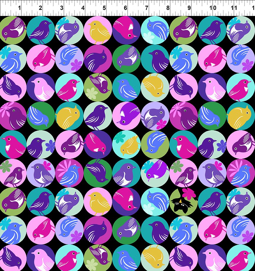 4FT 2 In The Beginning Fabrics, Designed by Jason Yenter, for Flock Together, Circle Birds, Jewel