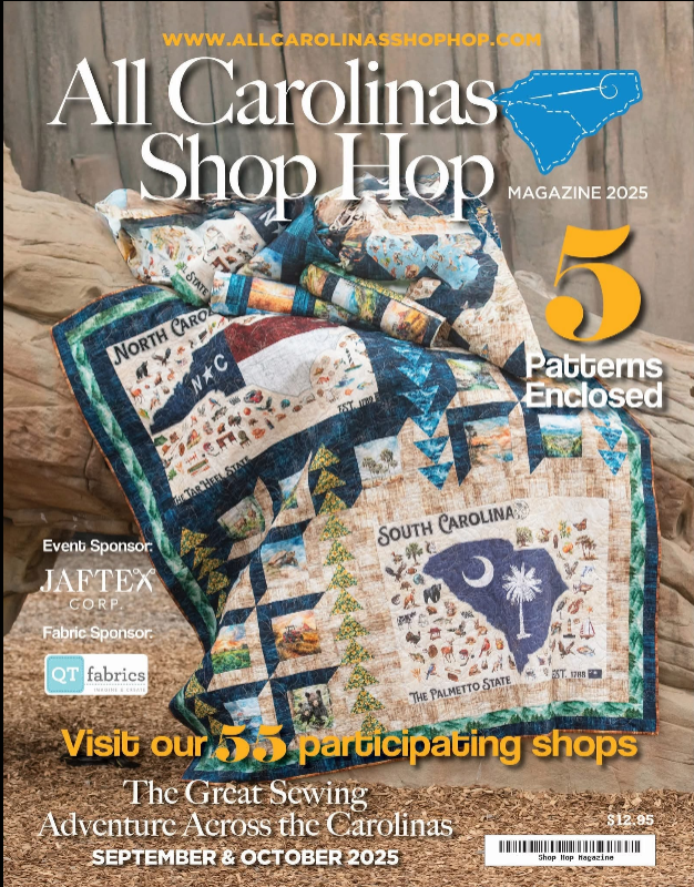 The All Carolinas Shop Hop Magazine is your guide to all things about the event. In addition, you will find patterns, articles and resources for sewing and quilting. Your magazine will be a great reference even after the Shop Hop has ended. Use it as inspiration for a new project, or to find a quilt shop as you meander through North and South Carolina.