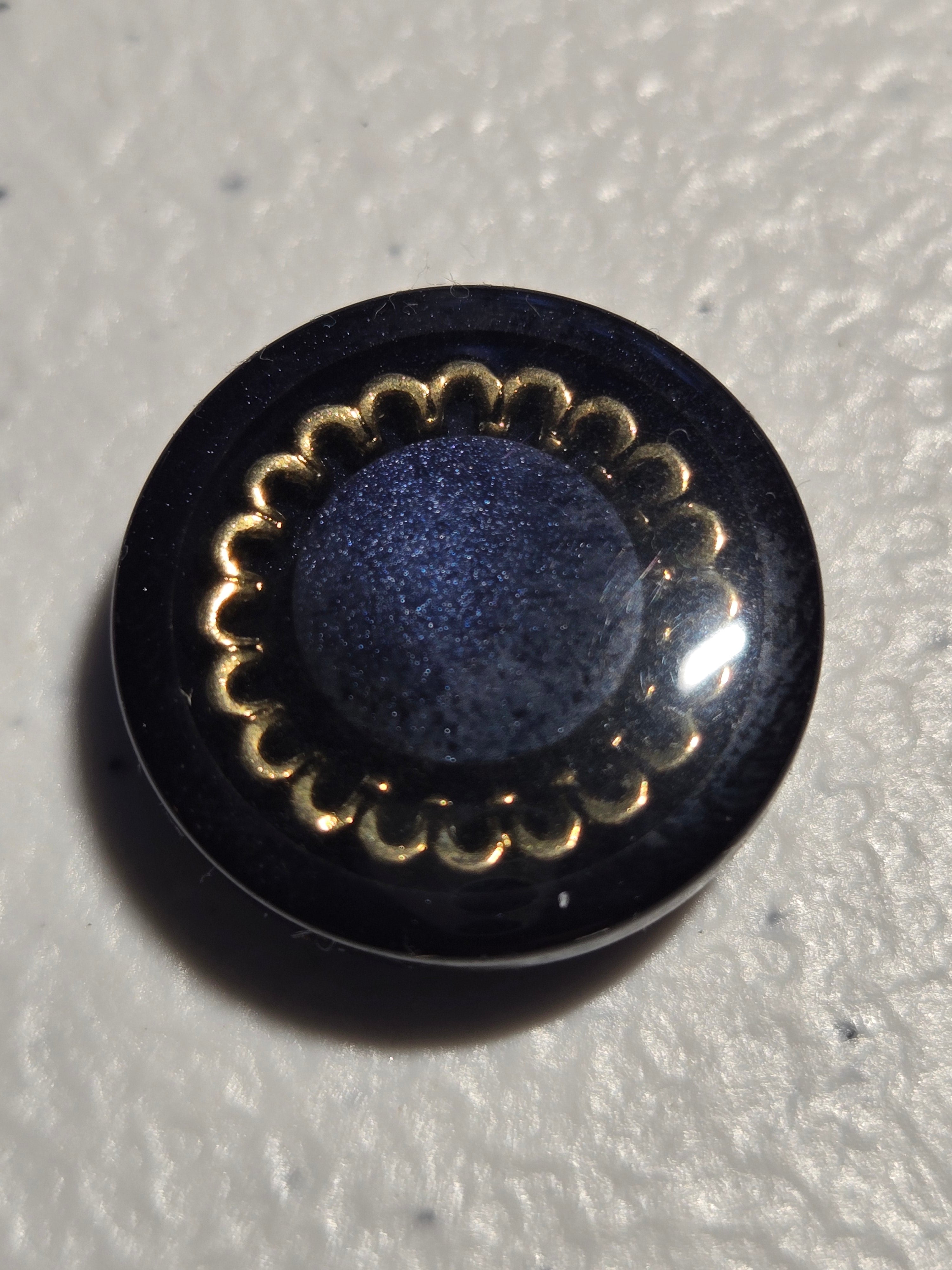 22745 - 20 MM (3/4") Navy & Gold Circle Accent - Flat Shank Button