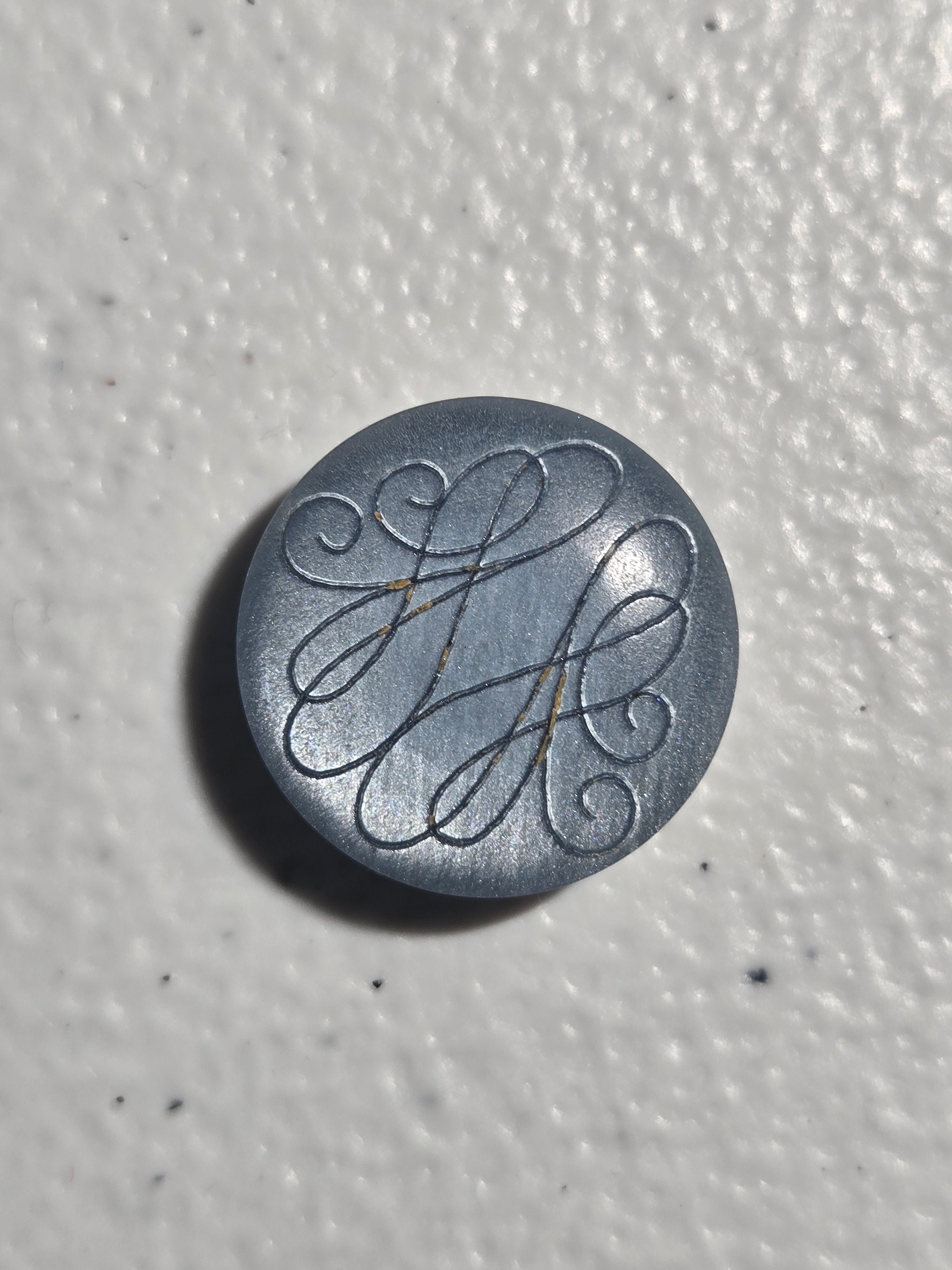 231236 - 18 MM (5/8") Light Blue Monagram Style - Quarter Shank Button - Washable & Dry Cleanable