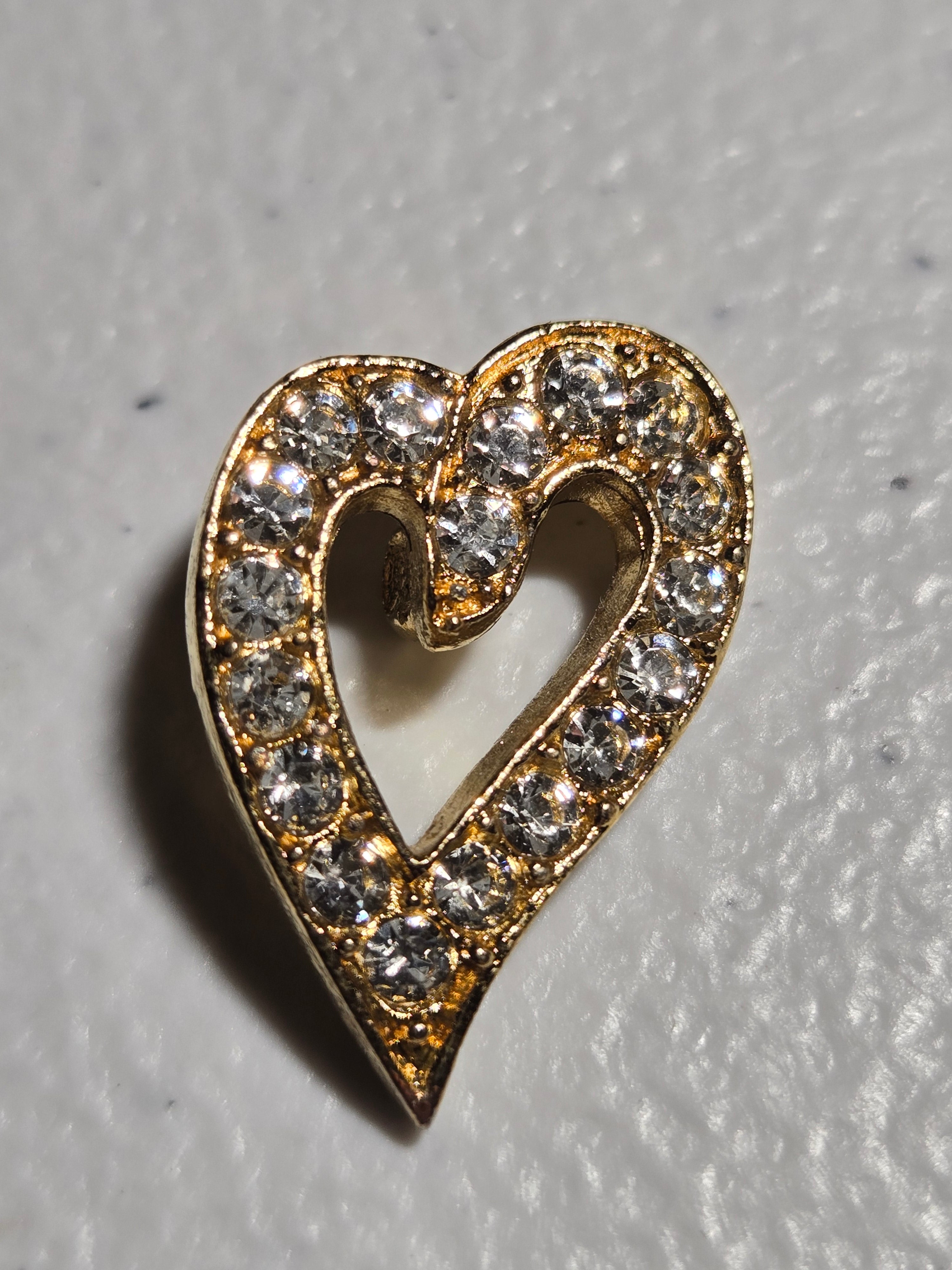 23488 - 20 MM (3/4") Gold Heart Crystal Novelty Button - Flat Shank Button