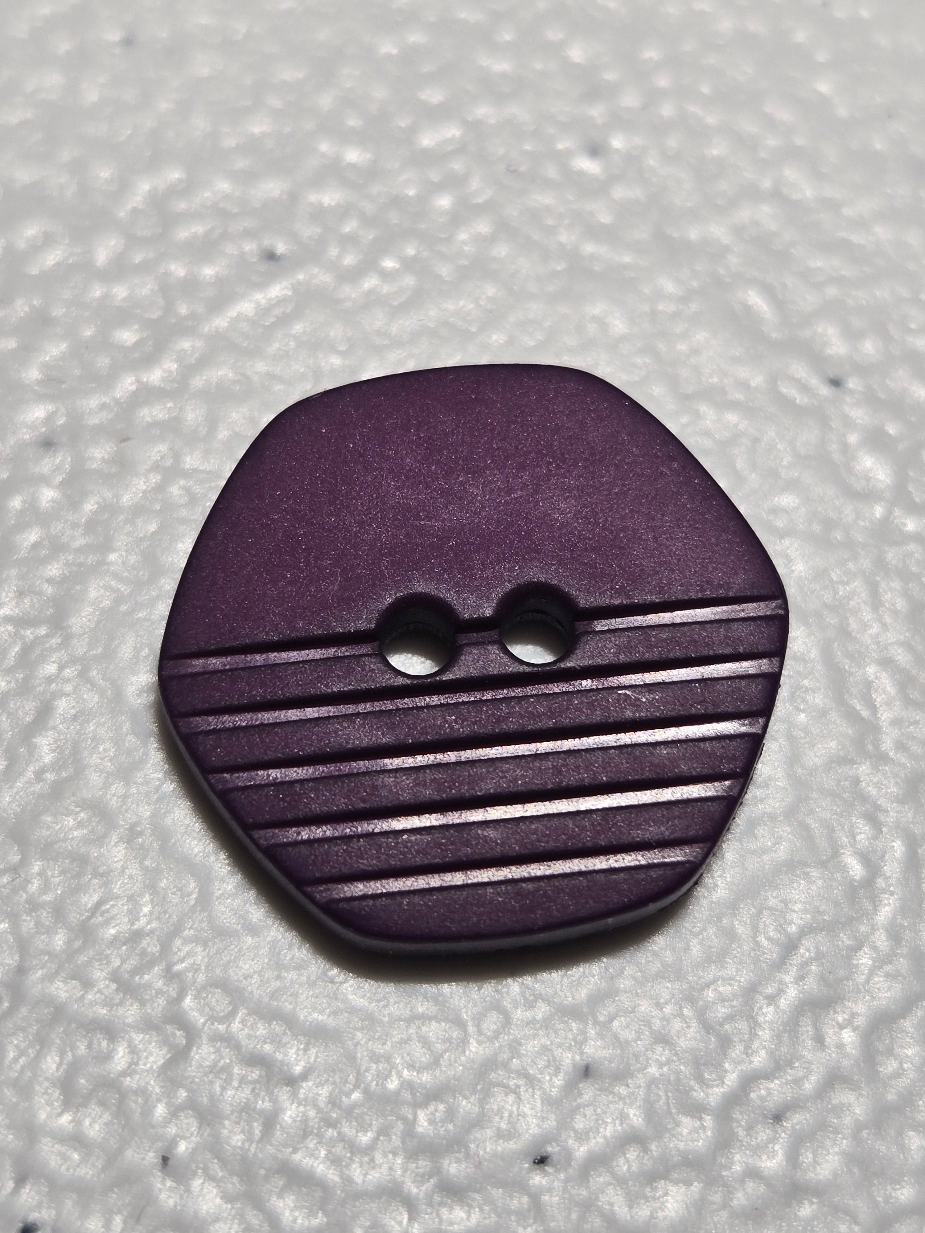 240610 - 20 MM (3/4") Purple Art Deco Hexagonal Design with Half Side in Grooves - Two Hole Button - Washable & Dry Cleanable