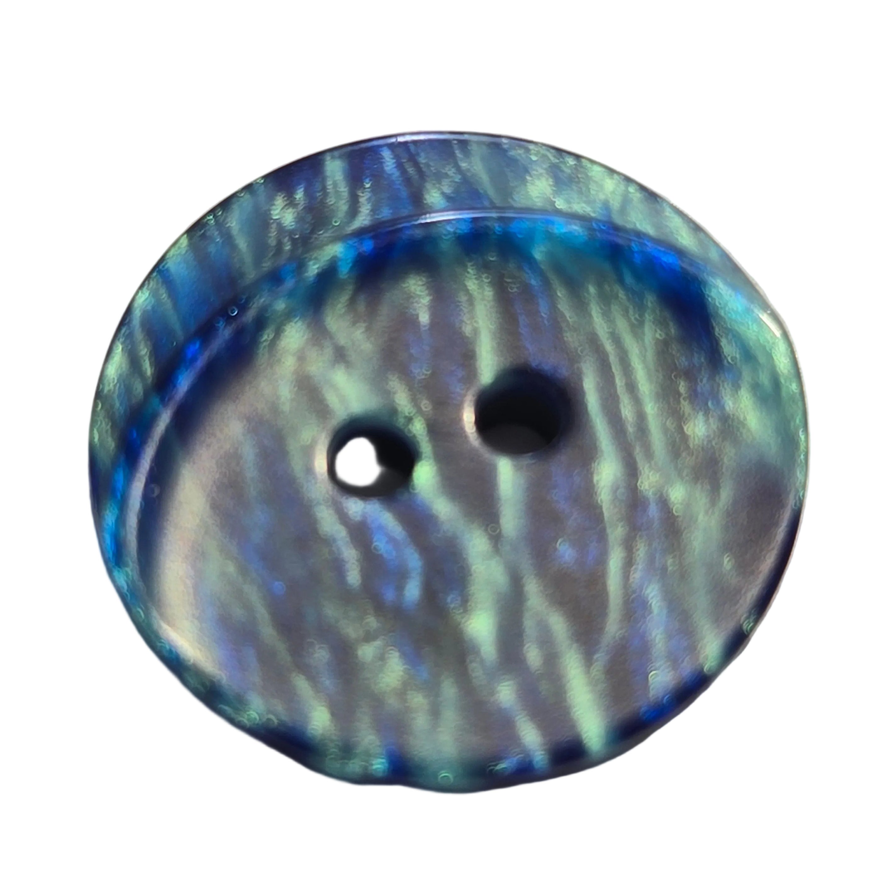 251151 - 18 MM (5/8") Blue & Green Mottled - Two Hole Button - Washable & Dry Cleanable