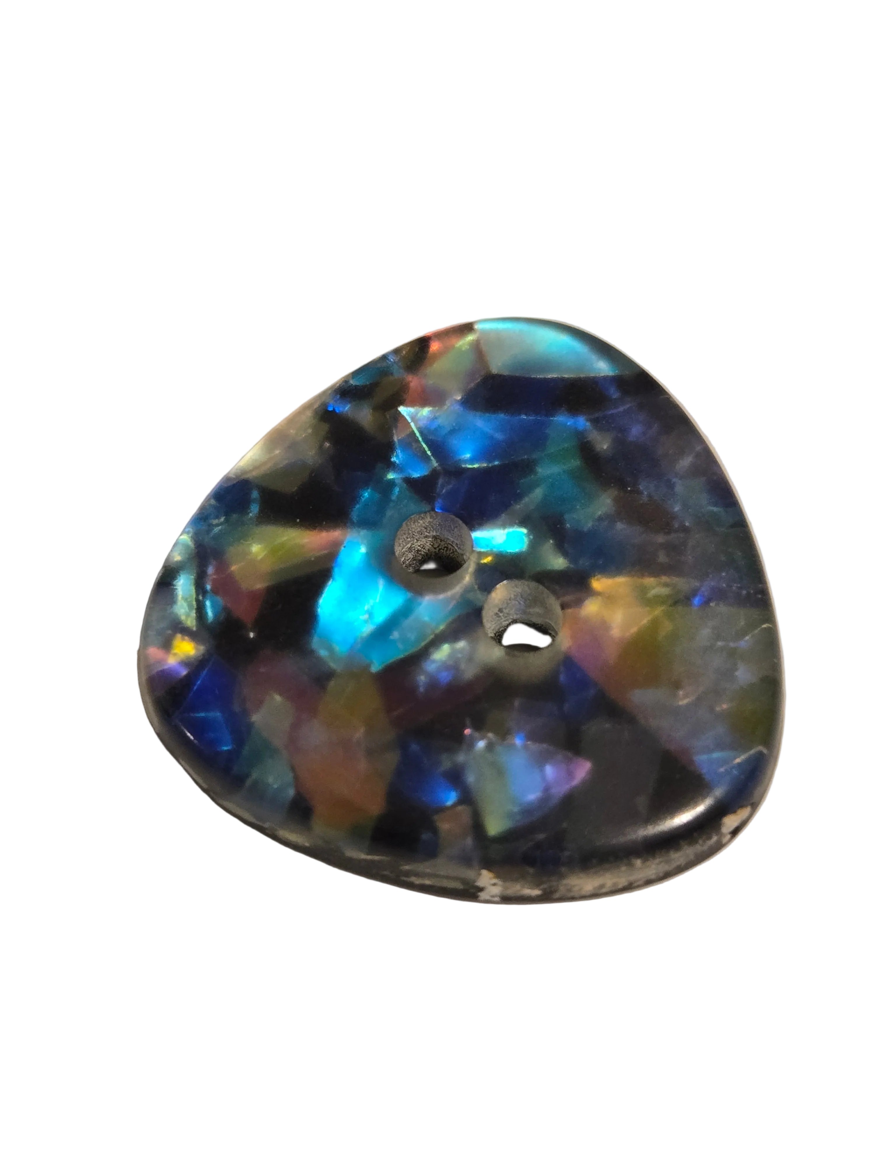280601 - 20 MM (3/4") Irridescent Triangle with Blues, Greens, Purples, Silver - Two Hole Button - Washable & Dry Cleanable
