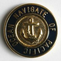 310136 - 15 MM (1/2") Blue & Gold Design with 24K Gold Plate - Full Shank Button - Ocean Navigate of Pacific - Washable & Dry Cleanable