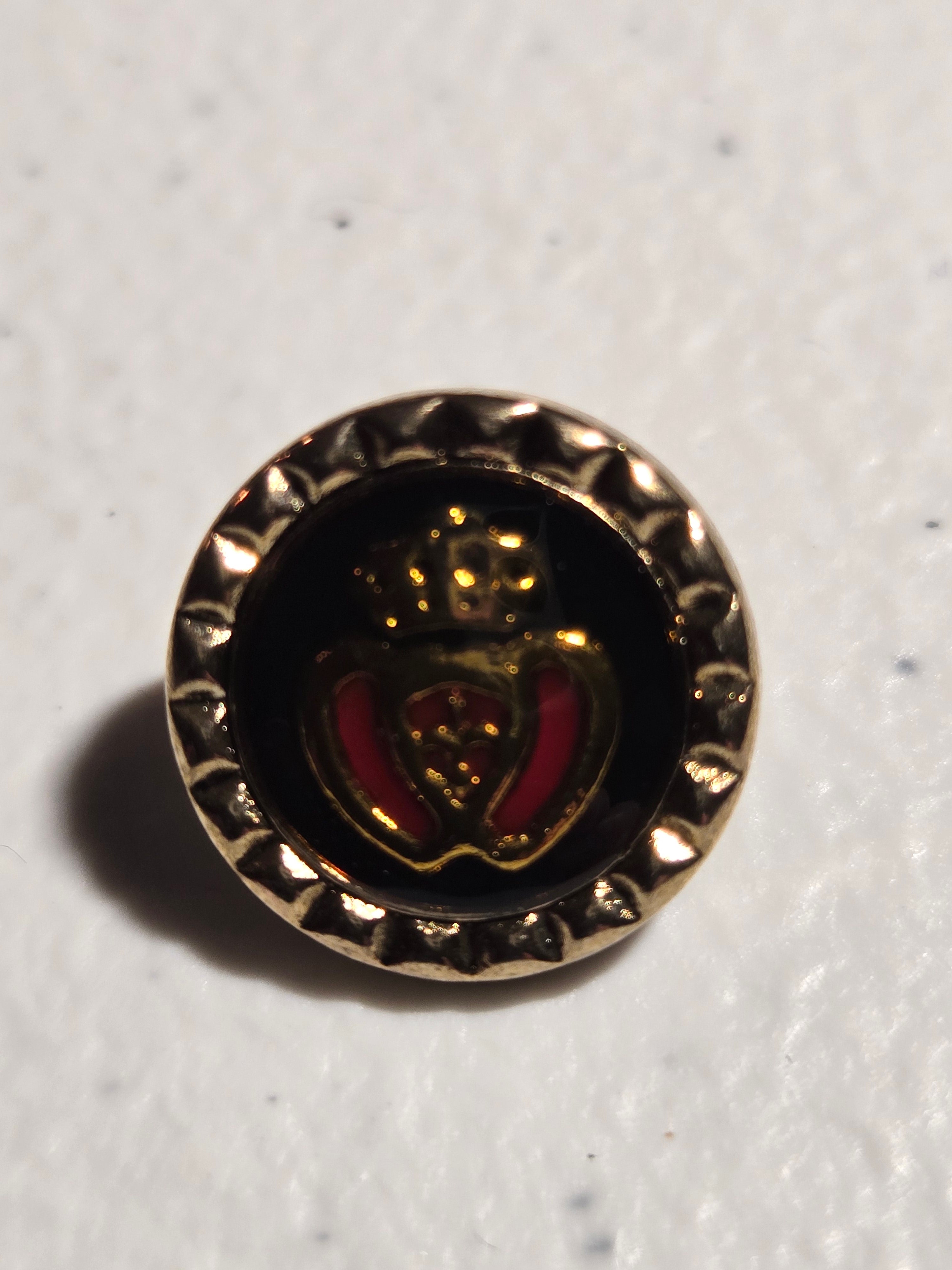 330239 - 15 MM (1/2") - Red - White - Blue Crown Design - 24K Gold Plated - Full Shank Button - Washable & Dry Cleanable