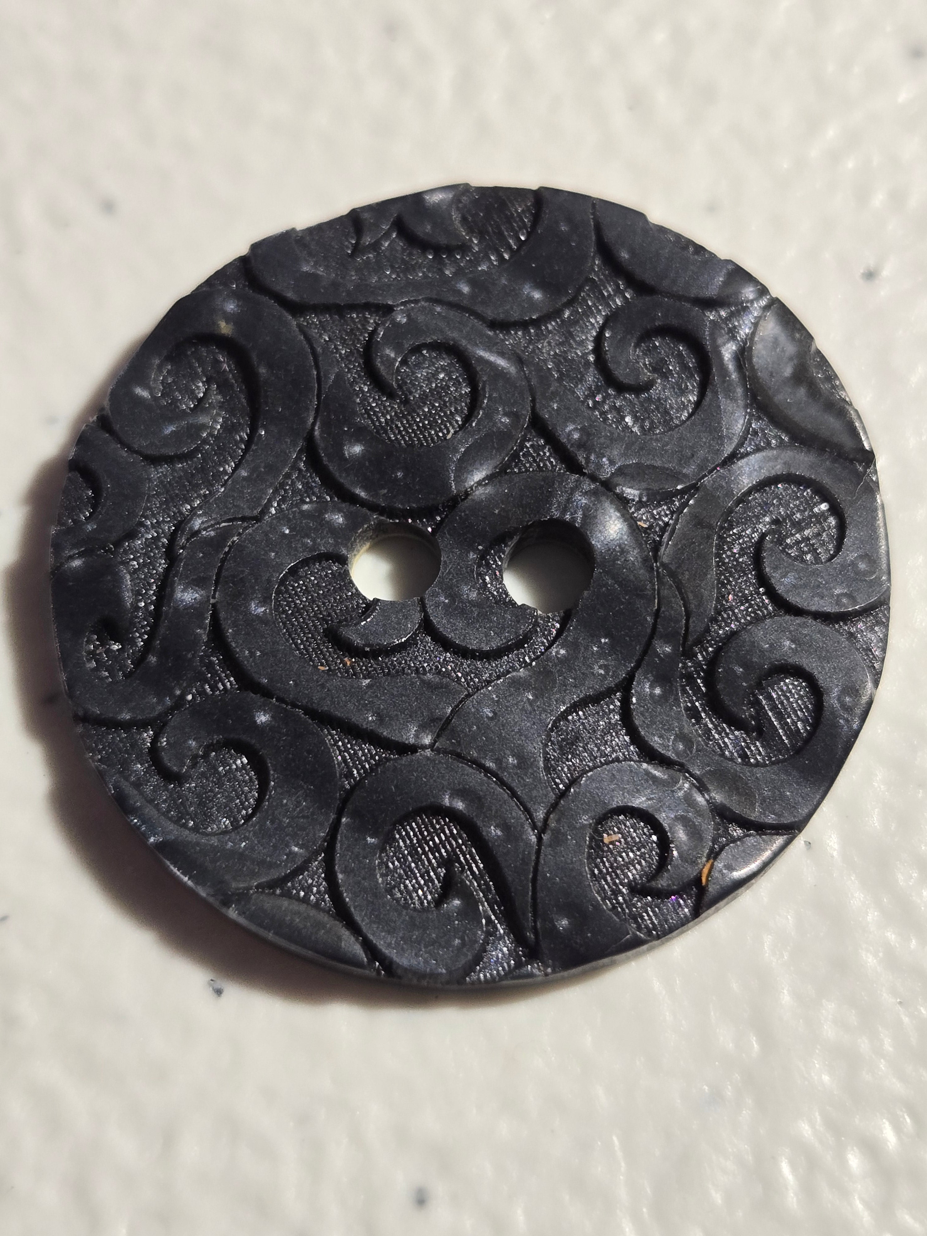 330461 - 28 MM (1 1/8") - Blue Etched Wavy Design - Two Hole Button - Washable & Dry Cleanable