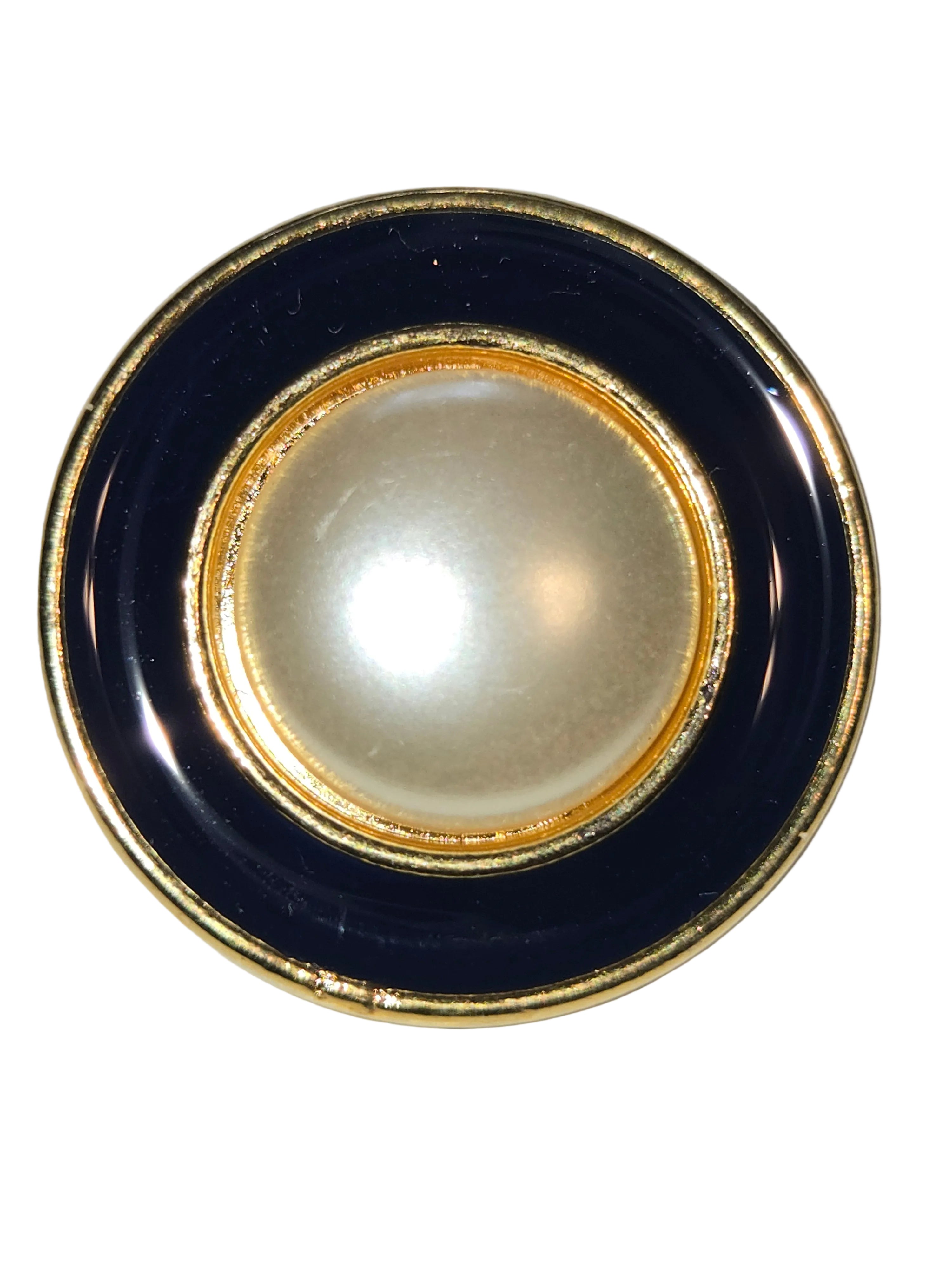 350260 - 20 MM (3/4") Gold & Navy Pearl Center - 24K Gold Plated - Flat Shank Button - Hand Washable