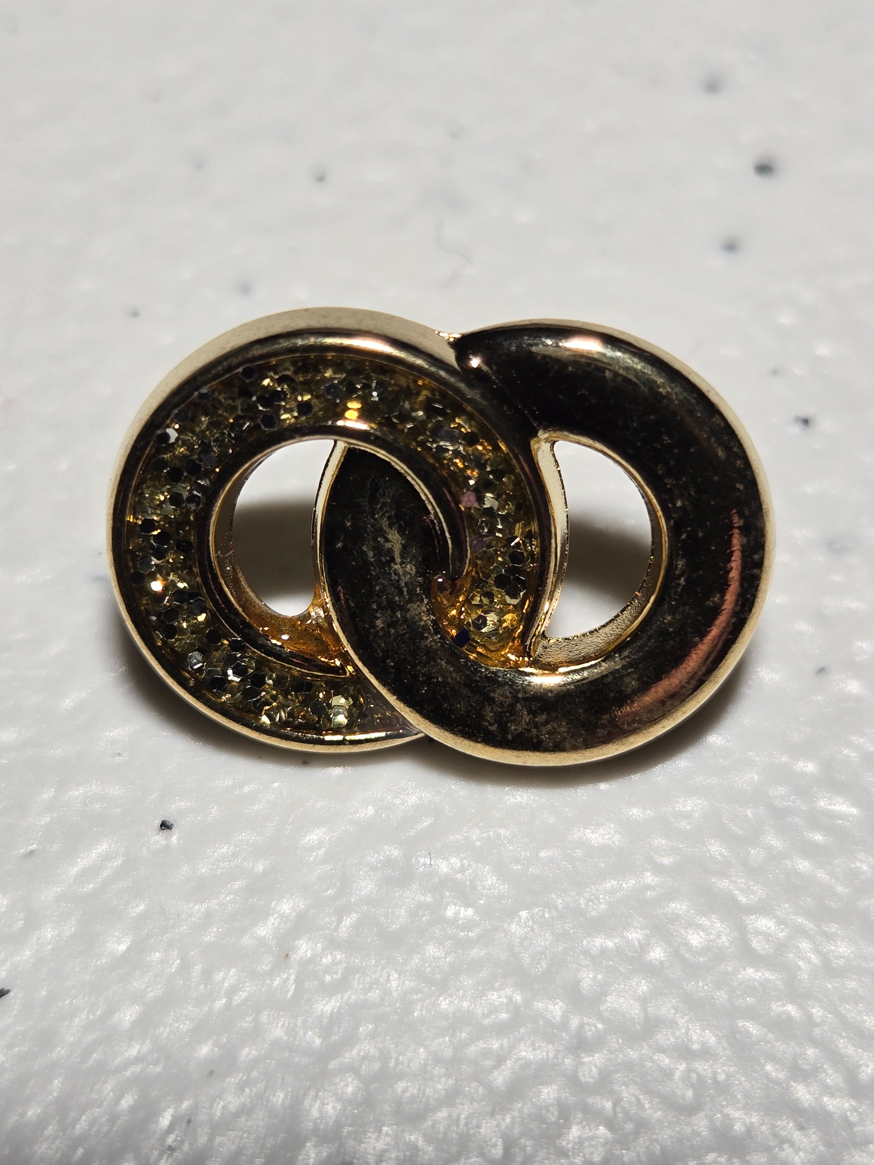 360185 - 20 MM (3/4") Gold Interlocked Rings one has Crystals - 24K Gold Plated - Flat Shank Button