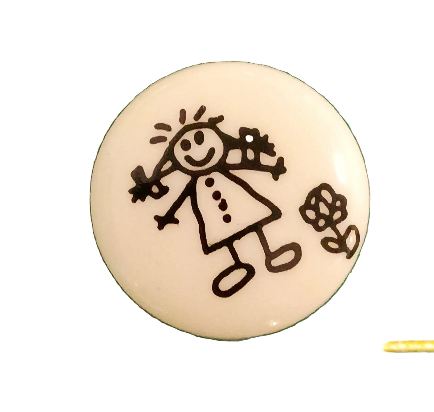 221507 - 18 MM (1/25/8") - Stick Figure - Girl with Flowers - Large - White - Full Shank Button - Washable & Dry Cleanable