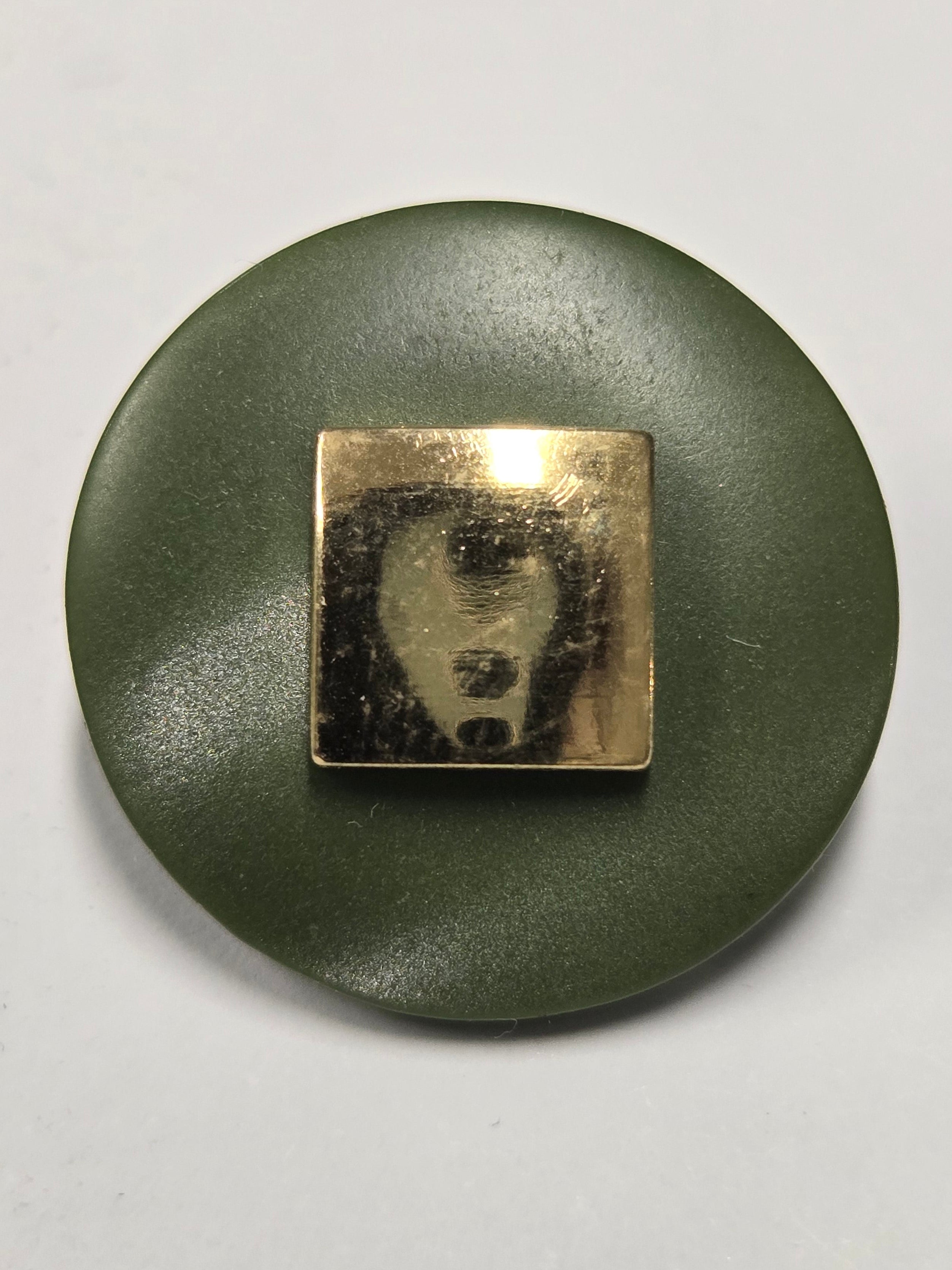 300491 - 20 MM (3/4") Green with Gold square center - Quarter Shank Button - 24K Gold Plated - Washable & Dry Cleanable