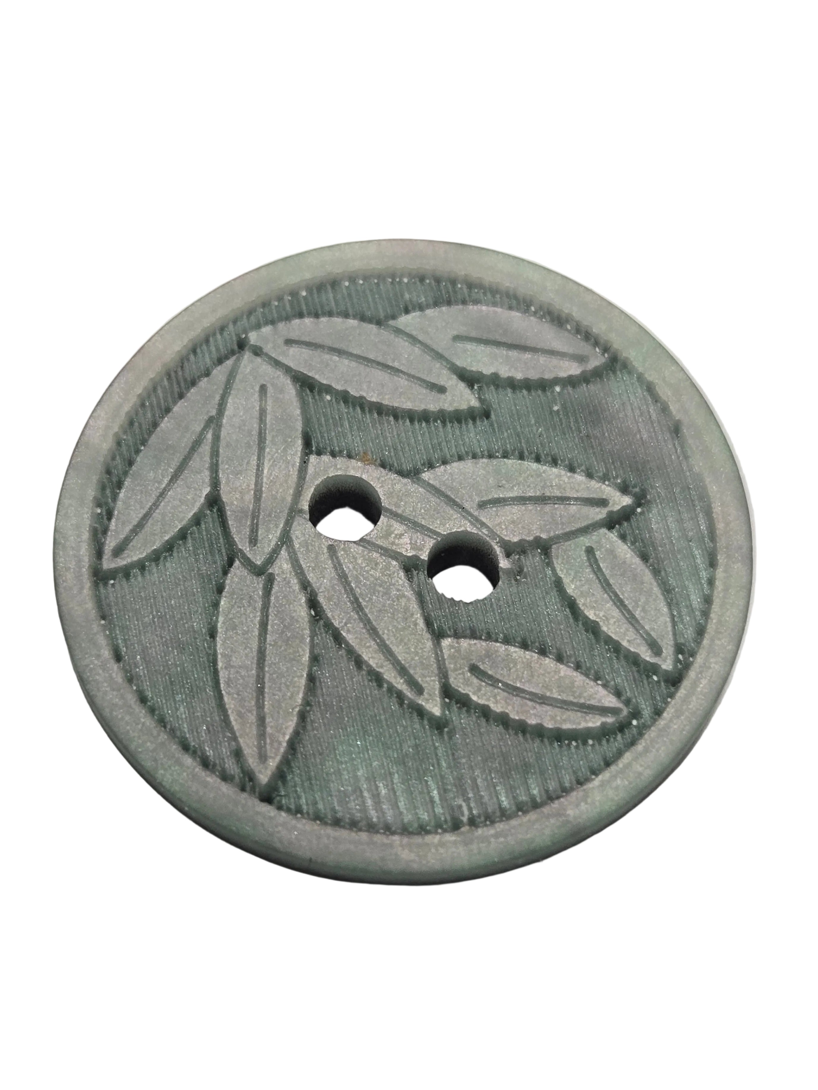 300623 - 23 MM (7/8") Teal Leaves - Two Hole Button - Washable & Dry Cleanable