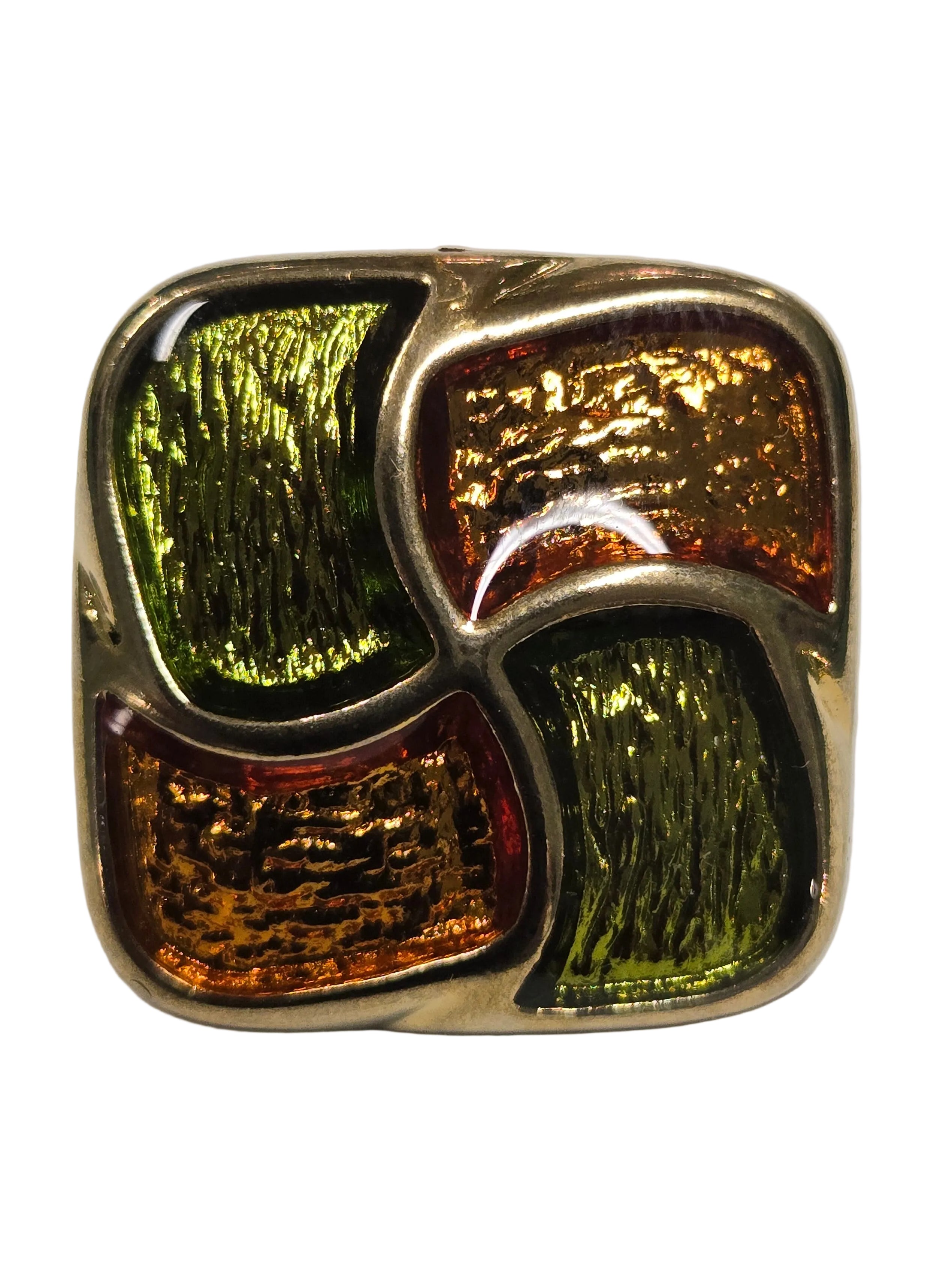 400016 - 25 MM (1") Green - Orange - Gold - 24K Gold Plated - Quarter Shank Button - Washable & Dry Cleanable
