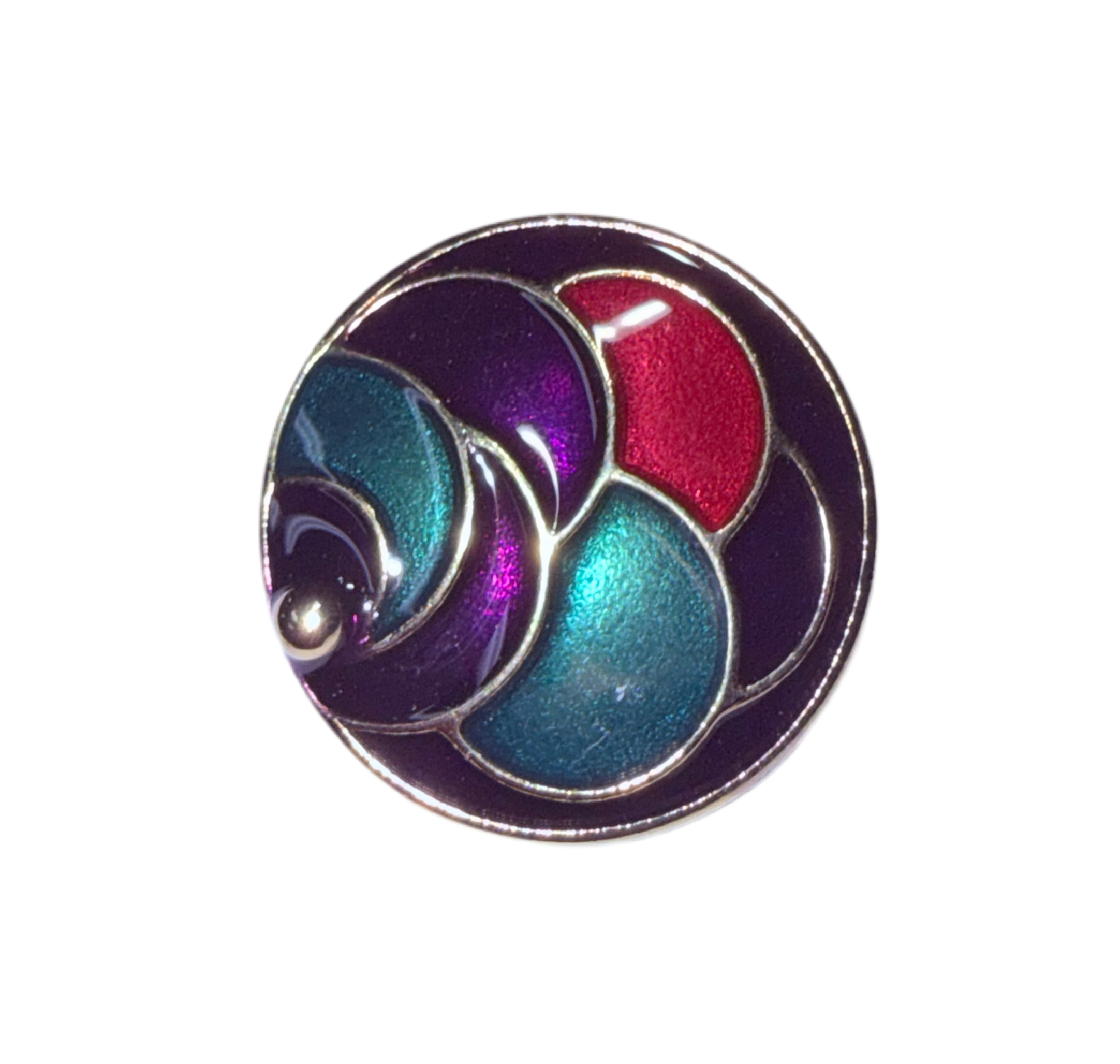 410011 - 28MM (1 1/8") - Purple, Green & Red Circles - Flat Shank - Washable & Dry Cleanable