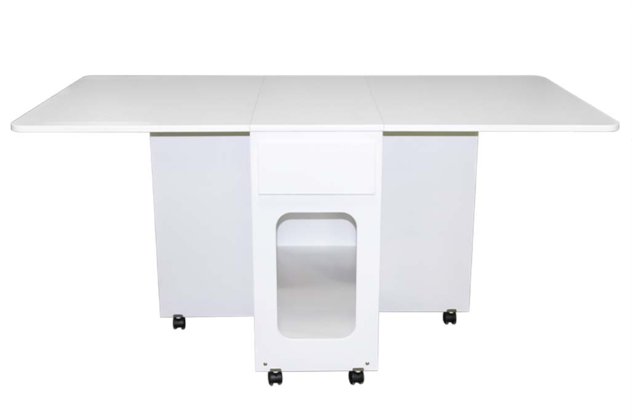 Dimensions: 17" W (72" Open) x 40" D (39.25" Open) x 35" H (Closed). Finish available in White. Shipping weight 133 lbs
