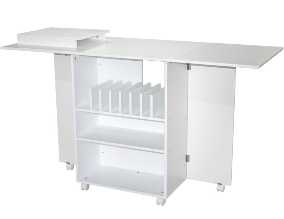 Dimensions: 32.5" W(68" Open) x 27" D (36" Open) x 37.25" H. Finish available in White (.80), Sunrise Maple (.90), and Sunset Maple (.91). Shipping weight 152 lbs.