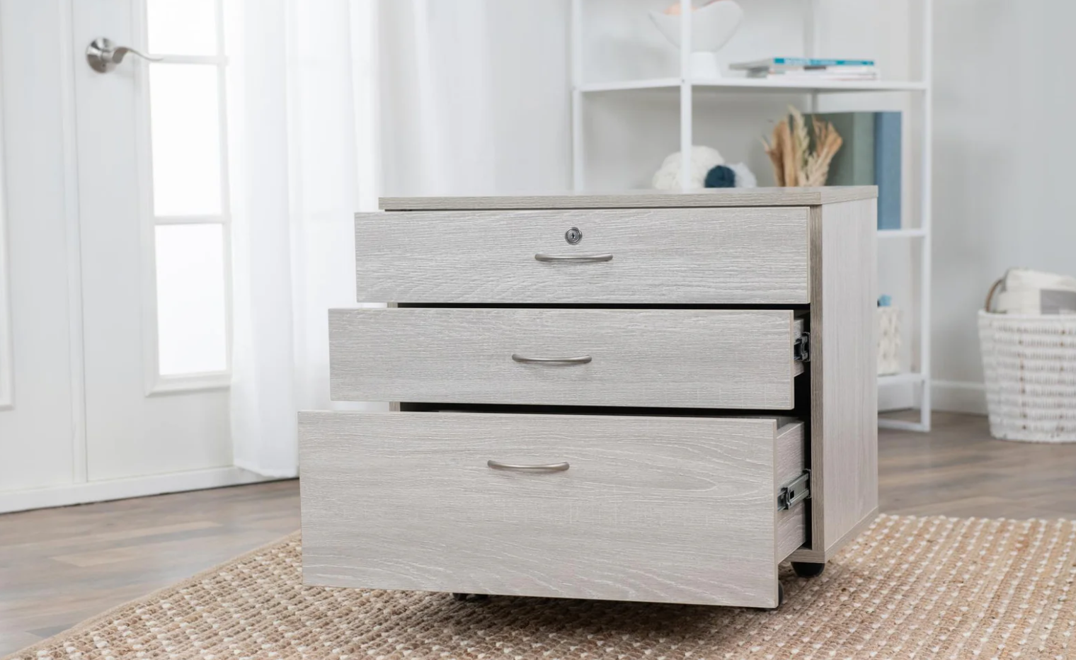 Keep your sewing and crafting essentials neatly organized with this rolling companion chest. Designed for convenience and efficiency, it features three spacious drawers to store fabric, notions, and tools with ease. The smooth-rolling, lockable casters ensure effortless mobility while keeping everything securely in place when needed. Comes fully assembled.