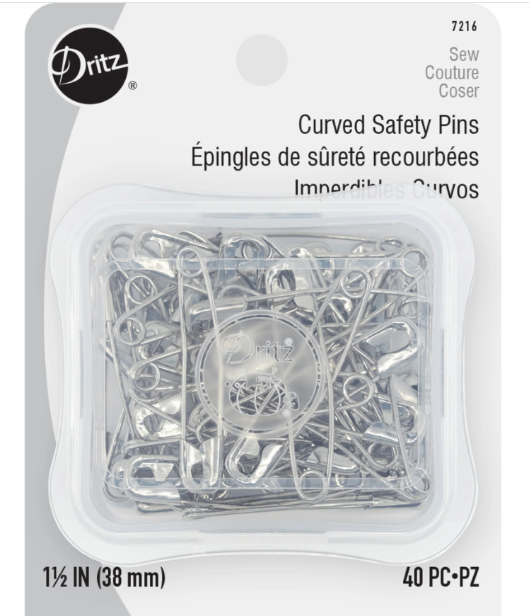 Dritz Curved Safety Pins make quilt basting easier, sliding smoothly through layers without shifting. Their rust-resistant design and contoured shape work well for sewing, quilting, crafts, jewelry making, and general DIY use.