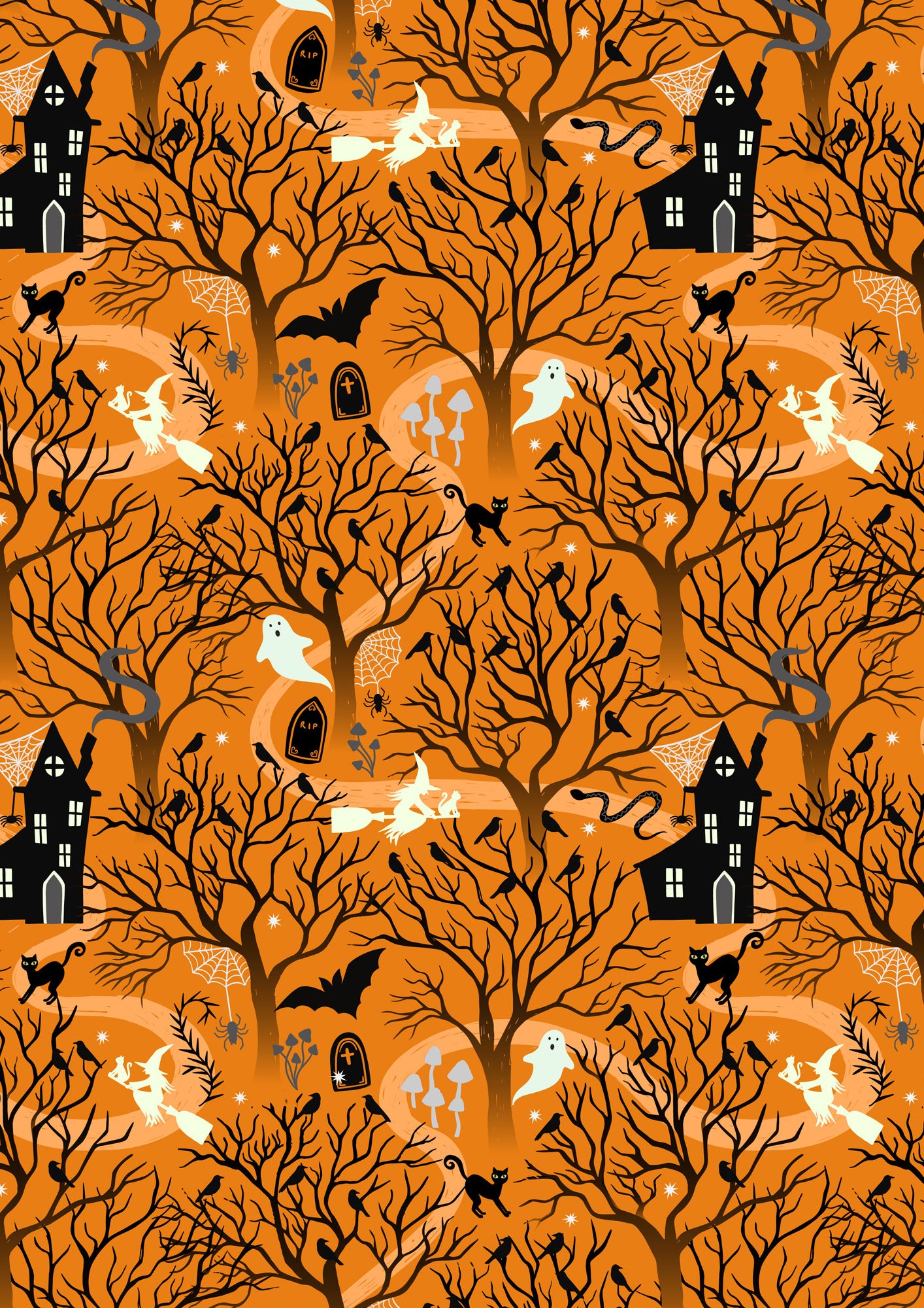 A882A, Lewis and Irene, Designed by Lewis and Irene, For Witchy Woods Collection, Witchy woods on halloween orange (glow in the dark)