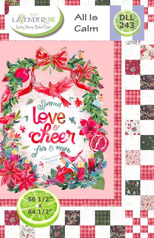 Join us at Quilt Lizzy Ayden for this easy Lavender Lime Panel Class. All Is Calm uses a checkered board pieced border to frame the Love And Cheer feature panel. Confident beginners are welcome. Beginning sewists will find the squares and rectangles in the border a challenge.