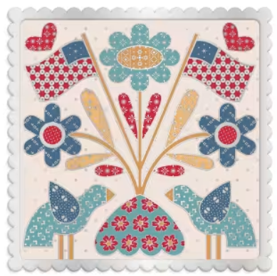 The Americana Needle & Scissor Minder by Lori Holt of Bee in my Bonnet holds your needles and scissors in place on your hoop. The dependable magnets attach securely to your design board. It can also double as a refrigerator magnet. Size is approximately 4" x 4".
